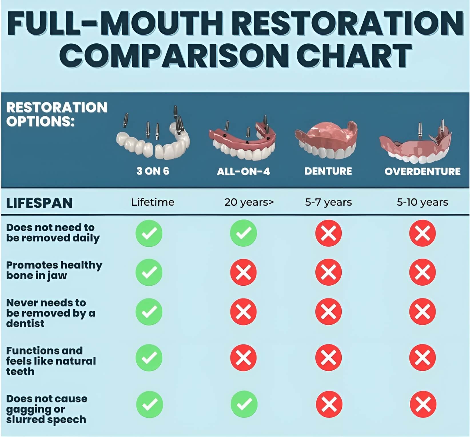 One of the most advanced treatments available—we're a certified provider of this revolutionary technique. Unlike traditional methods, 3 on 6 allows you to keep more of your natural bone and gums.